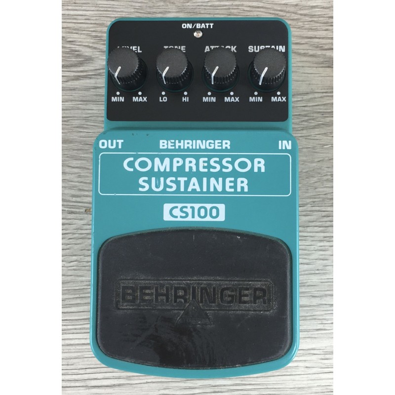 Il Behringer Compressor Sustainer CS100 è un pedale compressore per chitarra elettrica che uniforma il volume riducendo i picchi e aumentando i segnali più deboli, offrendo un suono più equilibrato e con sustain prolungato. È ideale per puliti definiti, arpeggi e parti soliste con maggiore presenza e controllo dinamico. Dispone di quattro controlli Level, Tone, Attack e Sustain per regolare volume, brillantezza, risposta della compressione e durata del sustain. Funziona con batteria 9V o alimentatore 9V DC (non incluso).