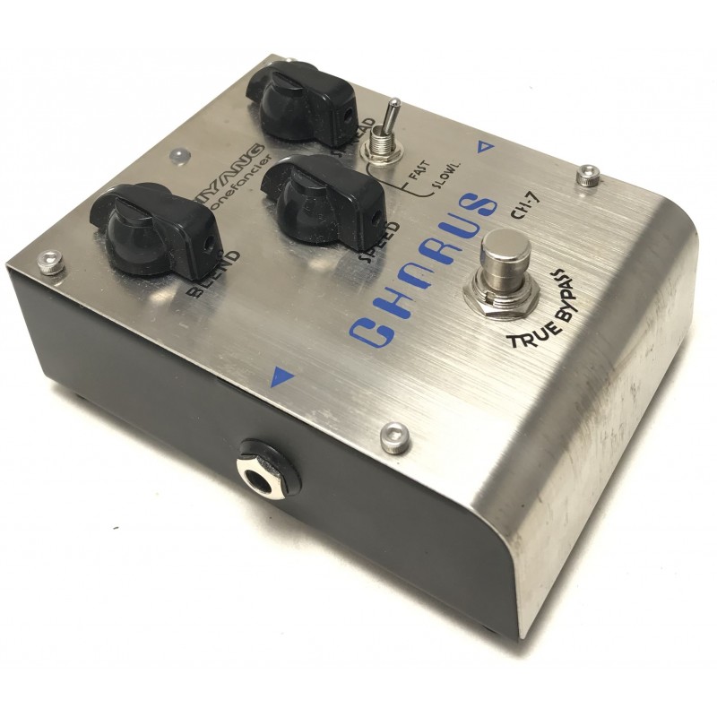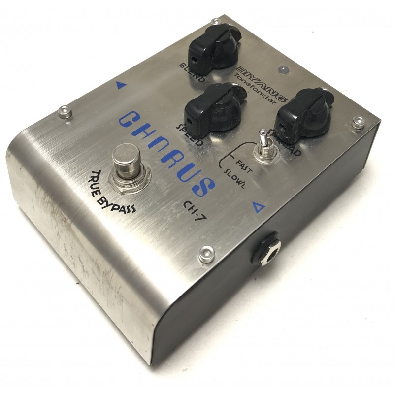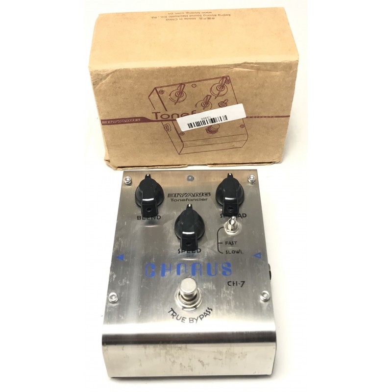 Il Biyang CH-7 è un Chorus analogico true bypass costruito con componentistica di qualità come i capacitori al germanio, implementa una doppia modalità operativa con possibilità di regolazione della larghezza dell'eeffeto e della velocità. Costruito in solido metallo con eleganti chicken pot è alimentabile con batteria o con alimentatore esterno opzionale