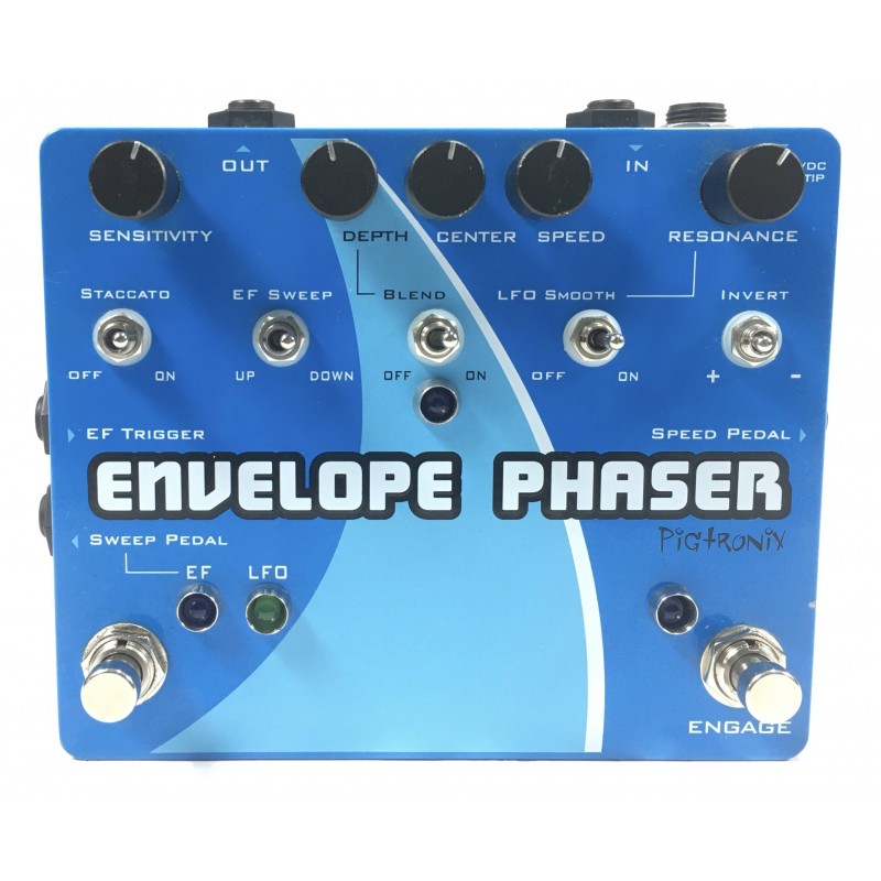 Il Pigtronix Envelope Phaser è un effetto di modulazione che oltre ad avere i classici controlli di un phaser implementa alcune interessanti funzioni come lo staccato utile per parti ritmiche, l'inversione di fase indispensabile in setup stereo e la possibilità di regolare la velocità tramite pedale d'espressione, il tutto con la classica qualità indiscussa di pigtronix