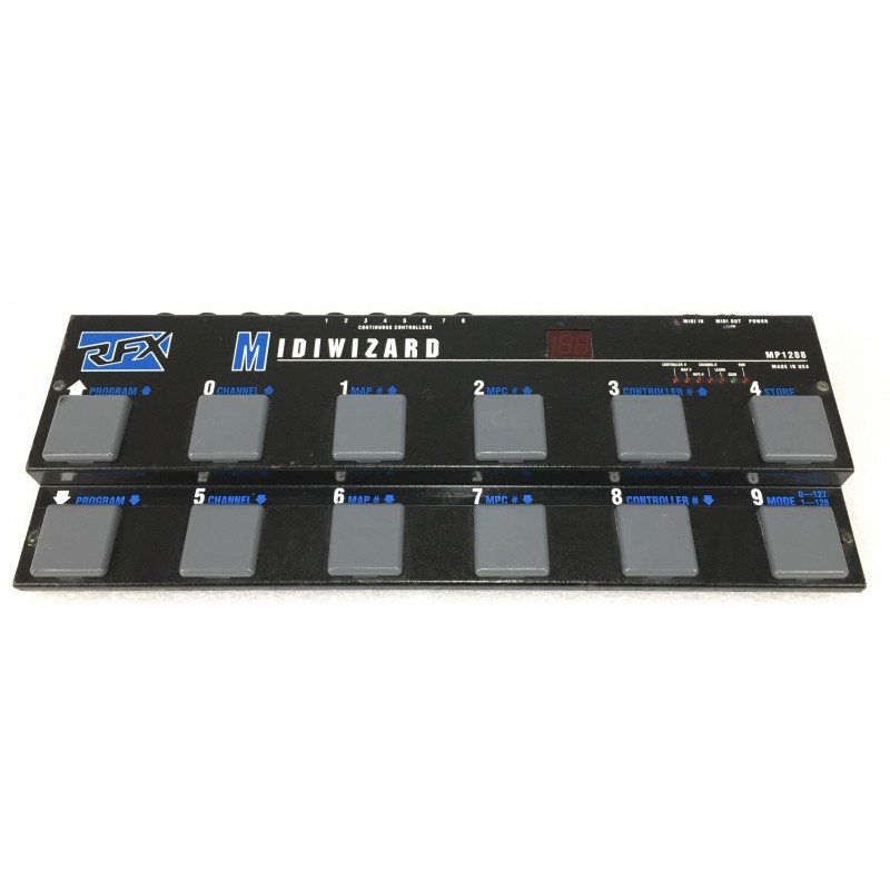 La RFX MP1288 Midiwizard è una pedliera midi programmabile ideale per comandare preamplificatori rack, testate, effetti o qualsiasi apparecchio dotato di midi a cui bisogna inviare messaggi di cambio preset. alimentabile via phantom o via alimentatore esterno opzionale
