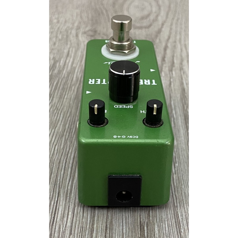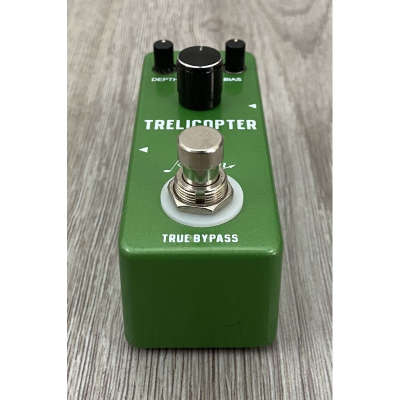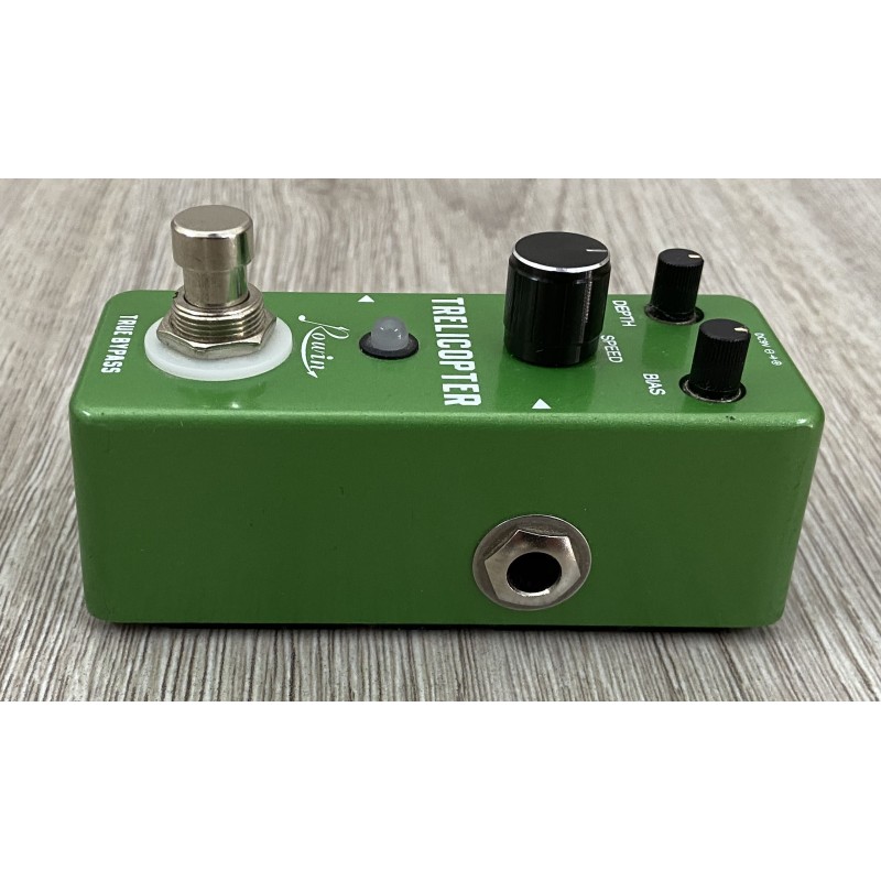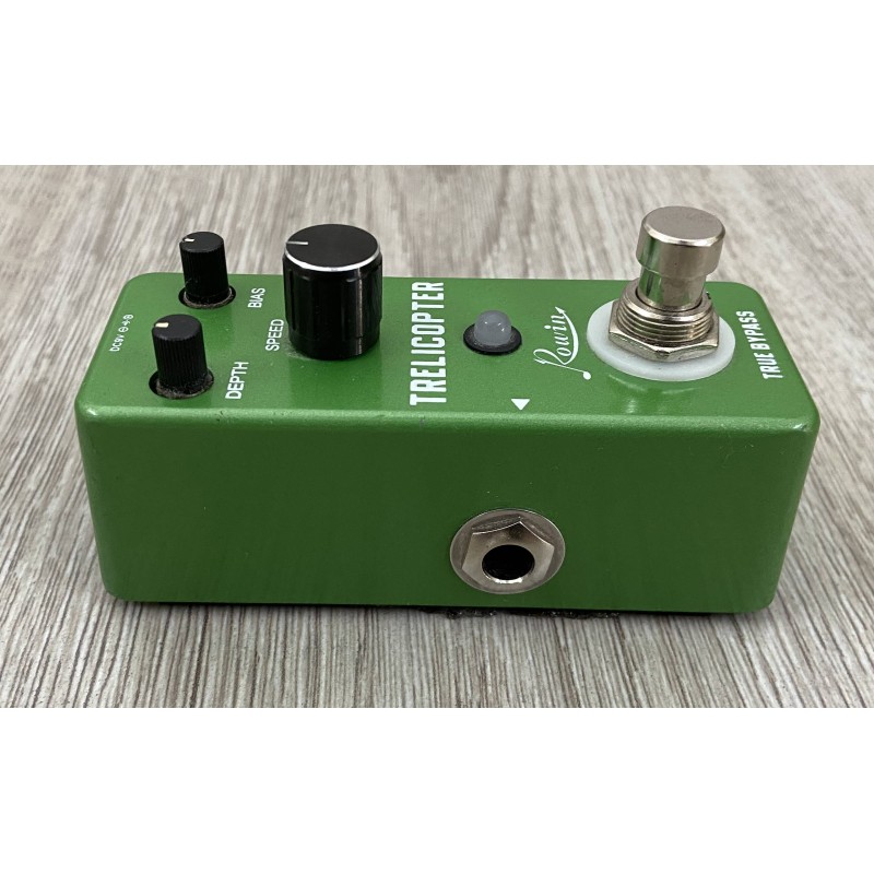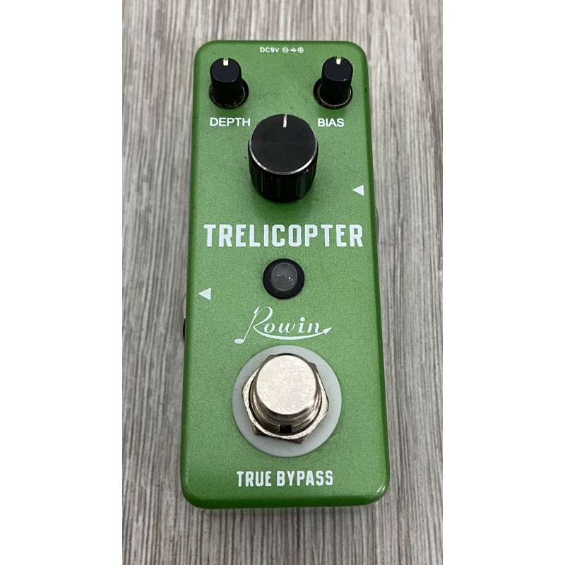 Rowin Trelicopter è un pedale effetto tremolo dalle dimensioni ridotte. La presenza di tre potenziometri offre la possibilità di modificare la durata dell'oscillazione dell'onda e garantisce versatilità timbrica.