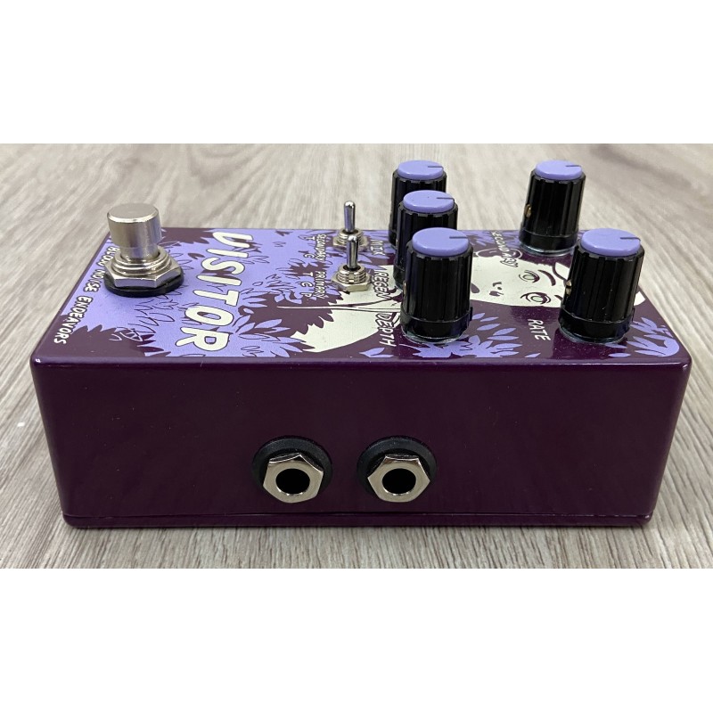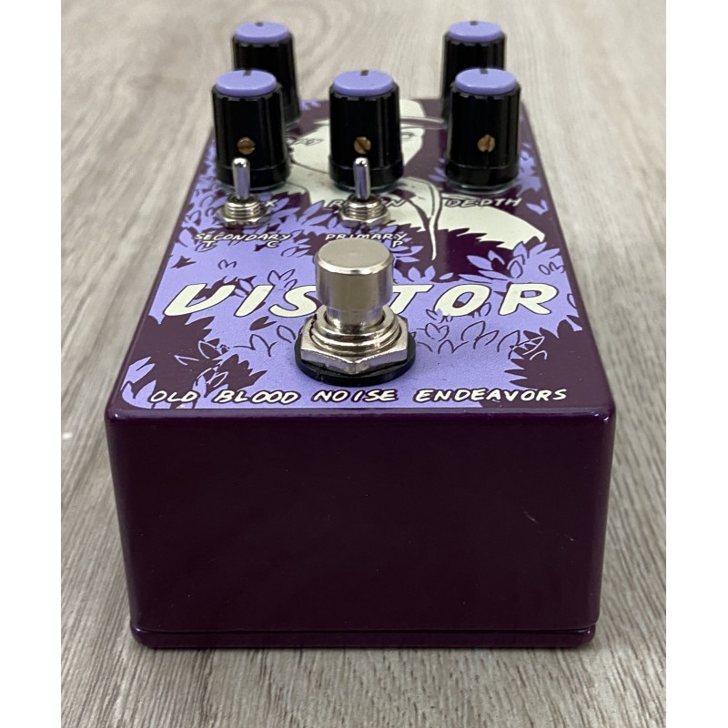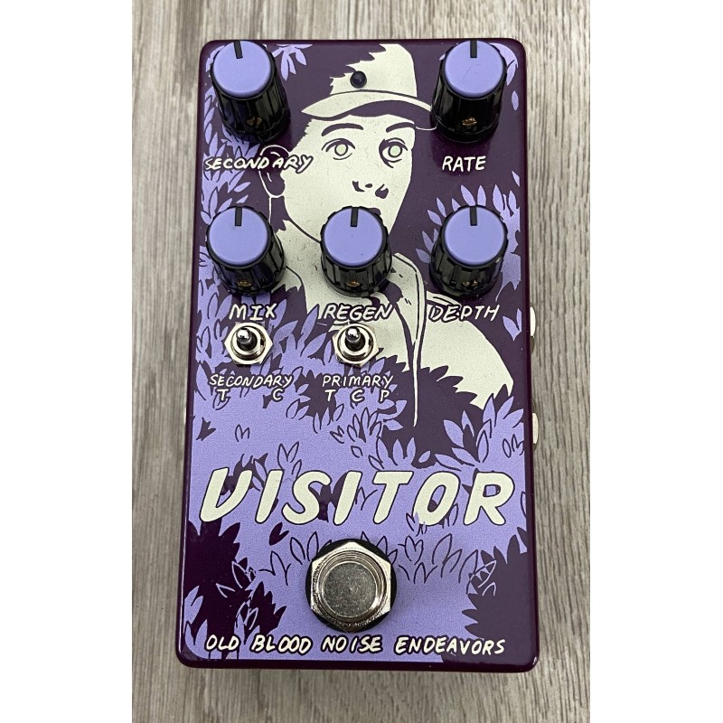 L' Old Blood Noise Endeavours Visitor è un pedale effetto modulazione con tecnologia di modulazione in parallelo che include tre effetti primari: tremolo, phaser e chorus. Controllo rate e depht, switch secondario per controllare la velocità e offset del delay della modulazione secondaria, controllo regen, controllo master mix ed un suono denso, corposo e autentico