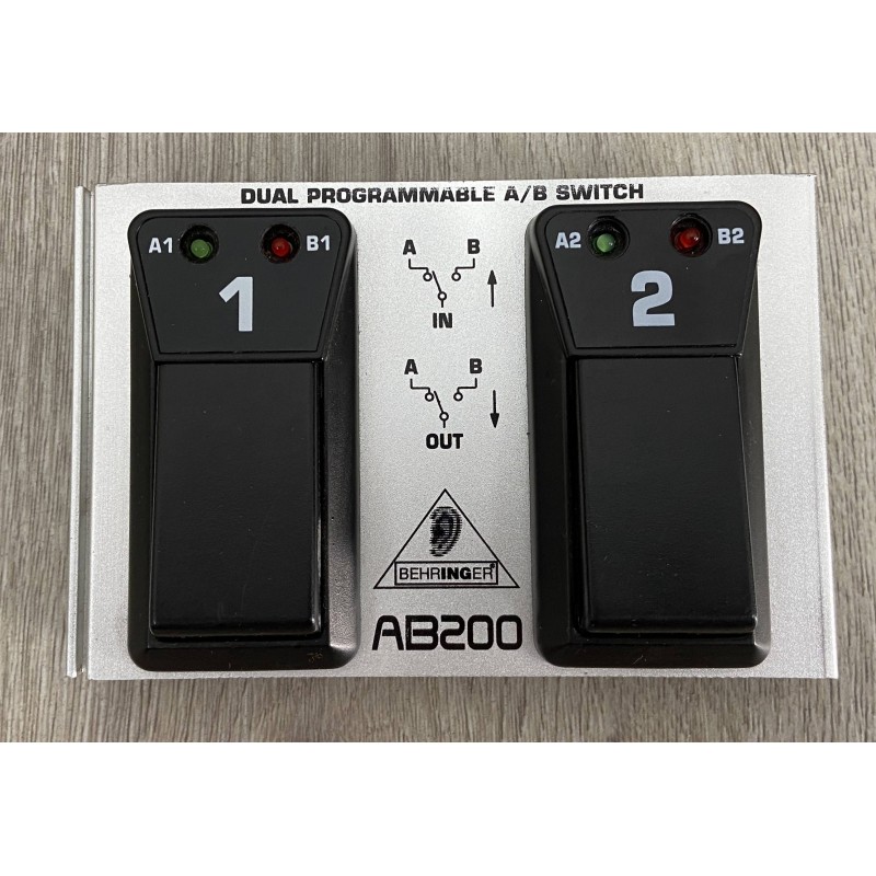 Il Behringer AB200 è un footswitch compatto a due canali adatto sia per l'utilizzo sul palco che in studio di registrazione. Può essere utilizzato su diversi strumenti con opzioni di controllo esterne come: amplificatori per chitarra, tastiere, rythm machine e sistemi di illuminazione. L'AB200 offre la possibilità di passare facilmente da due segnali di ingresso ad un'unica uscita: ad esempio due amplificatori per chitarra e una sola chitarra, oppure due chitarre ed un solo amplificatore. Dei led posti su ognuno dei controlli indicano lo stato e permettono di selezionare facilmente la preferenza in qualsiasi momento. Alimentazione con batteria 9V (non inclusa).