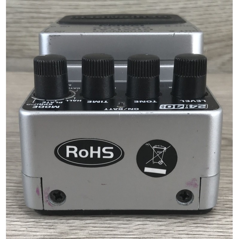 Il Behringer DR 100 Digital reverb è un pedale effetto incredibilimente potente ed adattabile non solo alla chitarra ma a qualsiasi strumento anche stereofonico. Diversi tipi di riverbero integrati ideali per ogni situazione, hall, srping, plate, revese, gate, processamento del segnale a 24 bit, controlli frontali rapidi ed intuitivi