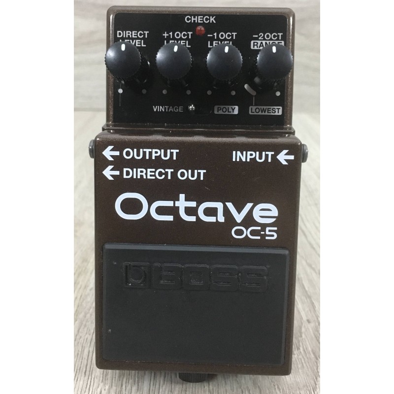 Il Boss OC-5 Octave è l'evoluzione dello storico pedale che offre, a differenza del suo predecessore, una risposta più accurata e naturale senza latenza, modalità polifonica per suonare anche gli accordi o vintage che ricalca il suono dell OC-2, ipostazione lowesta range per inserimento effetto solo alla nota più grave dell'accordo, uscita diretta, selettore chitarra-basso