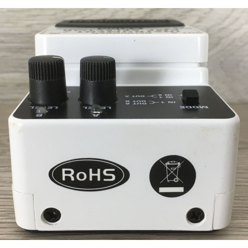 Il Behringer AB100 Instrument Amp Selector è un pedale alleato perfetto per chi ha l'esigenza di usare due strumenti sullo stesso amplificatore, due amplificatori dallo stesso strumento o entrambe; i potenziometri volume di cui è dotato permettono di livellare le sorgenti a piacimento