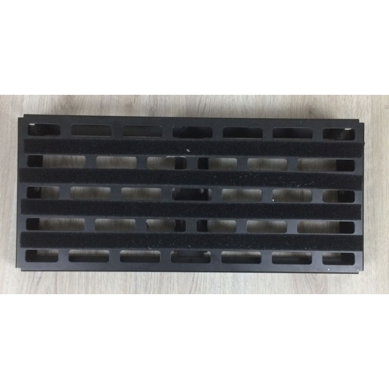 LA Rockboard Tres. 1 Pedal board ABS case è una pedaliera per effetti che può ospitare fino a 12 effetti a pedale; struttura in alluminio leggera con fori di montaggio per luce LED rockboard opzionale, slot per patchbay della stessa serie