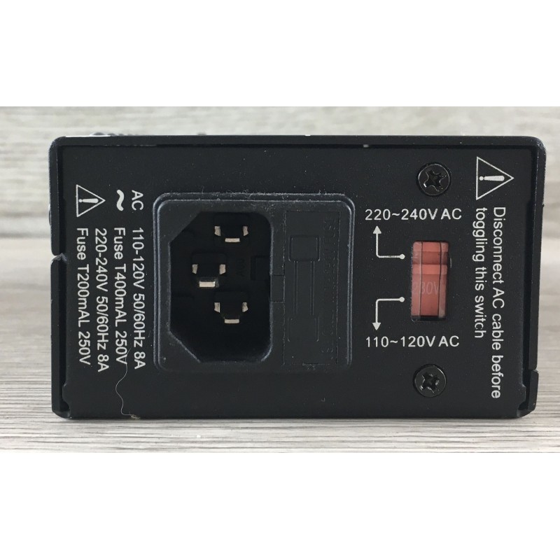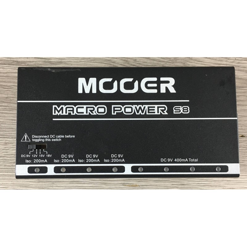 Mooer Macro Power S8 è un alimentatore multiplo per pedali effetti compatto dotato di 8 porte isolate con protezione da sovracorrente e voltaggio regolabile, ha inoltre un selettore di tensione in ingresso e i led per ogni uscita che monitorano in tempo reale lo stato.