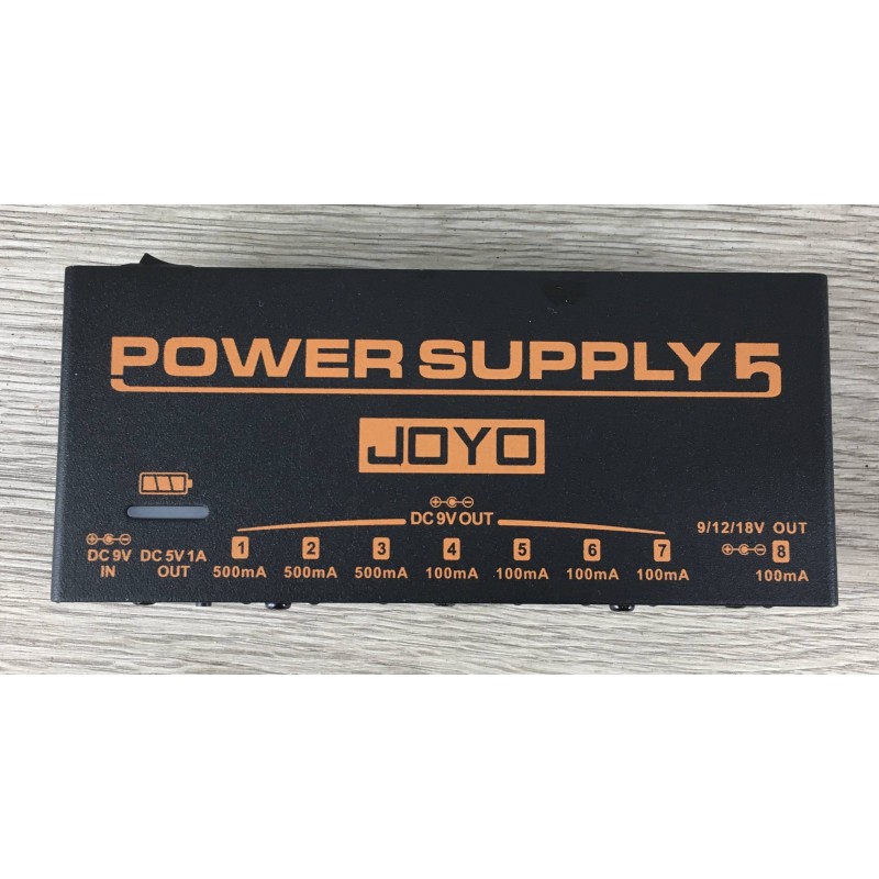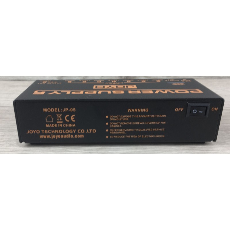 Il Joyo JP?05 è un alimentatore compatto e portatile ricaricabile per pedalboard, con batteria interna da 7,4 V/4400 mAh. Dispone di 8 uscite DC e una porta USB da 5 V per alimentare diversi pedali e dispositivi. Può essere usato anche senza rete elettrica, con autonomia fino a 2 h con pedali digitali o 10 h con pedali analogici. Include protezioni da sovraccarico e corto circuito e indicatore del livello batteria, ideale per live e setup portatili.