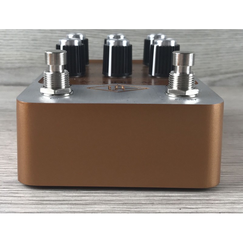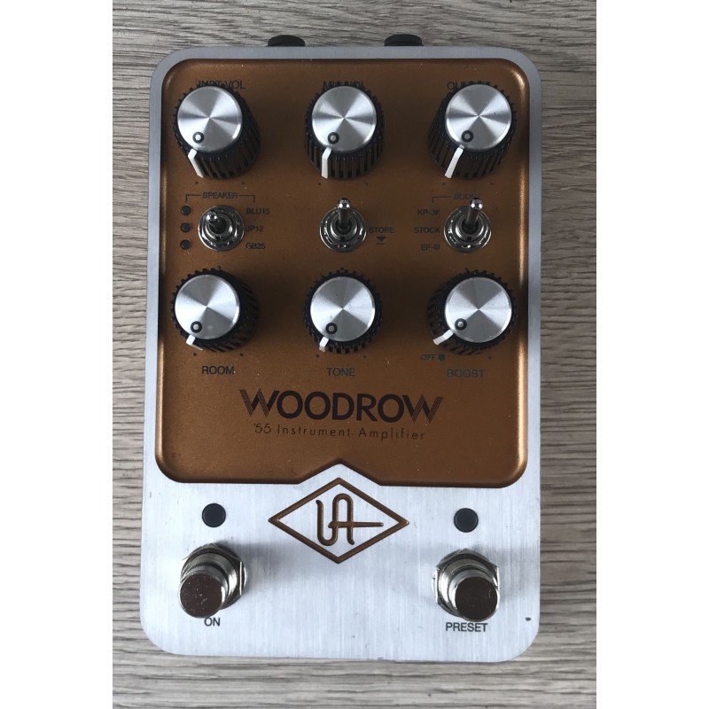 La UAFX Woodrow '55 è un pedale amp-in-a-box che riproduce il suono autentico dei classici amplificatori tweed anni '50. Offre clean caldi, crunch dinamico e overdrive vintage molto reattivo al tocco. Integra raffinati cabinet e microfoni virtuali di qualità da studio derivati da Universal Audio. Perfetta per registrazione diretta, live e pedalboard compatte senza amplificatore.
