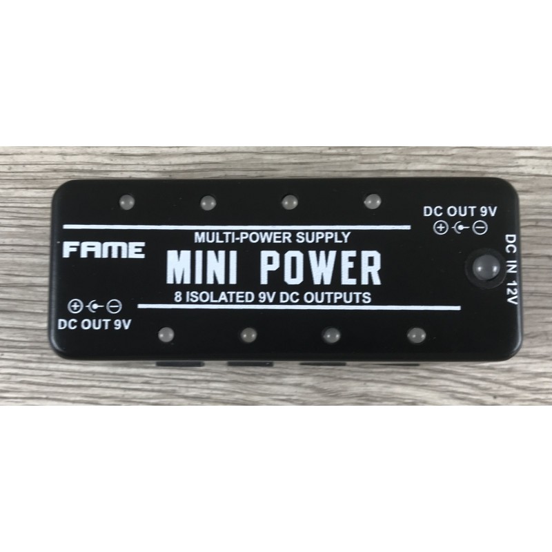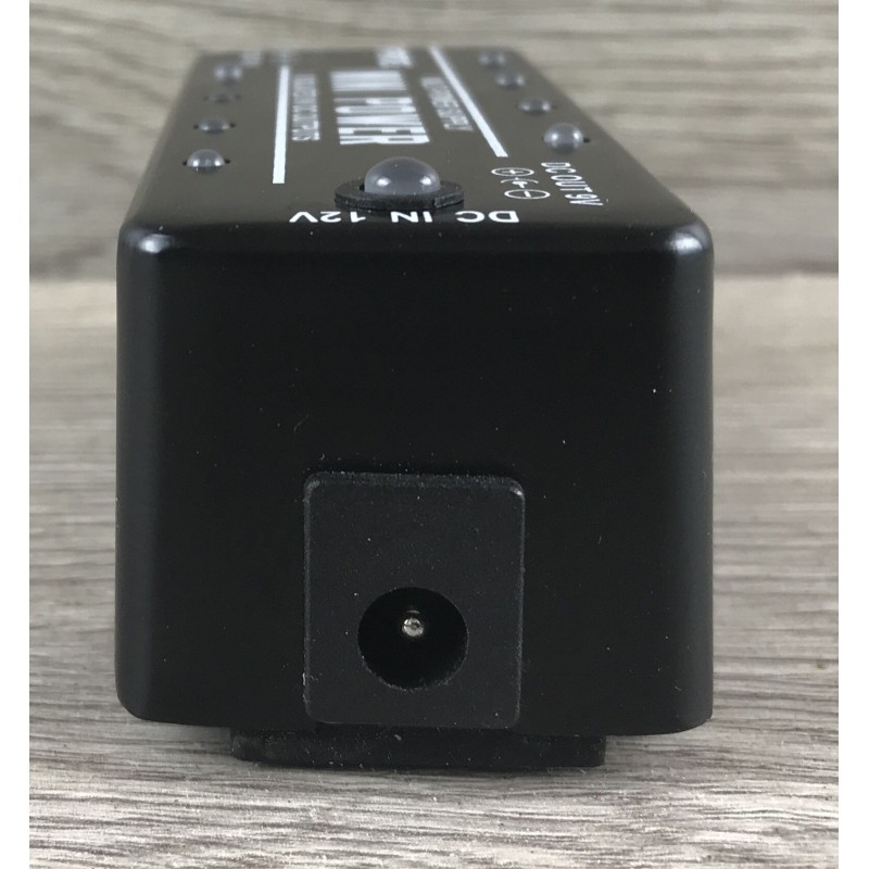 Il Fame LEF-329 Mini Power è un alimentatore multiplo estremamente compatto, progettato per alimentare fino a otto pedali contemporaneamente occupando il minimo spazio in pedaliera. Dispone di otto uscite isolate da 9V DC, ciascuna capace di erogare 300 mA, garantendo un funzionamento silenzioso e privo di interferenze. Ogni connessione è dotata di un LED di stato individuale che permette di monitorare immediatamente l'operatività di ogni pedale collegato. La struttura robusta e le dimensioni ridotte lo rendono una soluzione pratica ed economica sia per setup mobili che per installazioni fisse sotto la pedaliera.