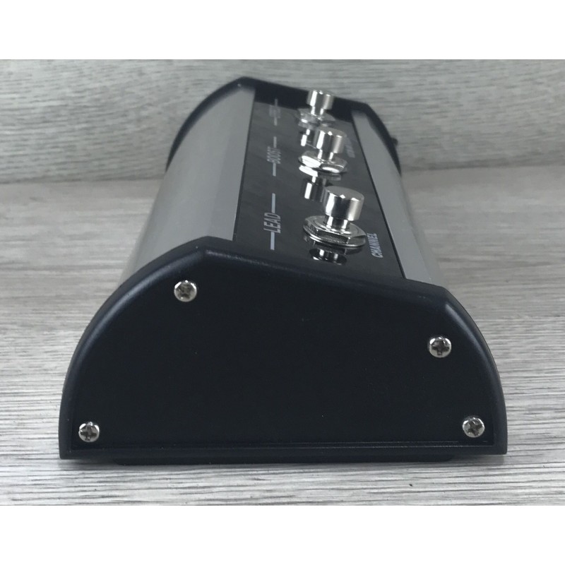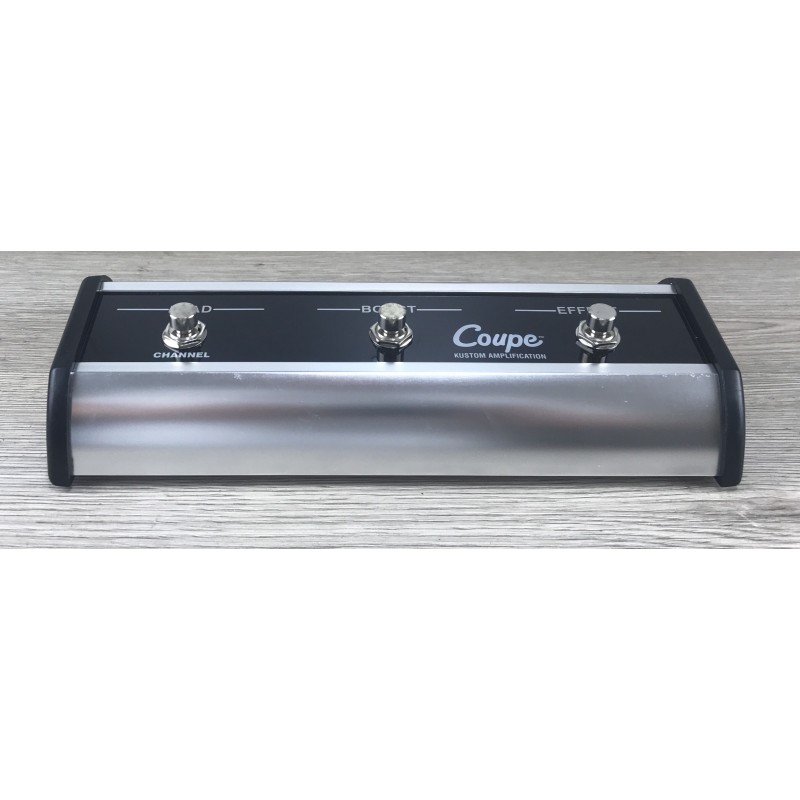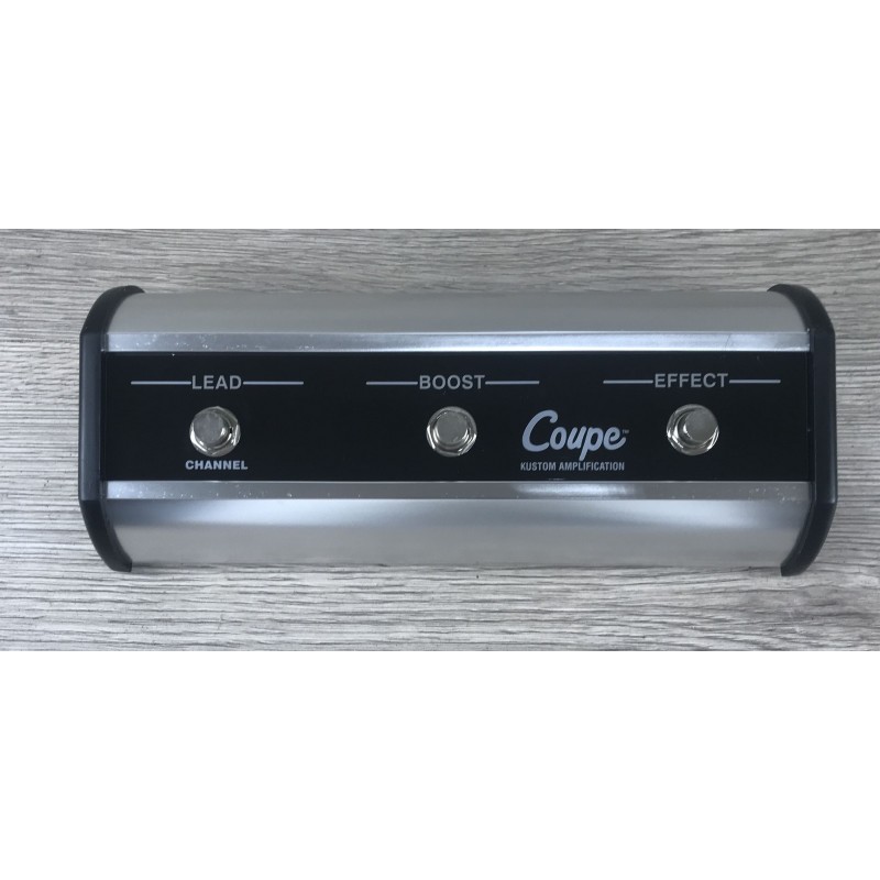 Il footswitch per la serie Kustom Coupe è un'unità di controllo a tre pulsanti racchiusa in un robusto chassis in elegante alluminio lucidato. Progettato per gli amplificatori '36 e '72 Coupe, permette di selezionare i canali, attivare il boost regolabile fino a 10 dB e gestire gli effetti di bordo come riverbero o tremolo. Ogni interruttore è accompagnato da un LED colorato che indica chiaramente lo stato della funzione attivata (Lead, Boost ed Effect). Si collega all'amplificatore tramite un unico cavo TRS, garantendo un controllo intuitivo e affidabile durante l'uso sul palco.