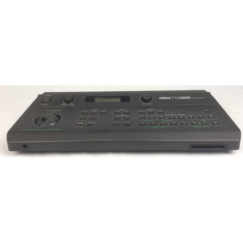 Lo Yamaha TG33 Polynominal è un sintetizzatore con sintesi ibrida FM e PCM derivante dall\' SY22 con gestione vettoriale dei parametri. doppia uscita stereo indipendente ed assegnabile, il modulo è espandibie tramite rom opzionali